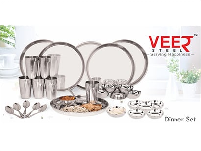 In almost every home we see majorly stainless steel cookware, plates and storage boxes. It is because stainless steel proves to be an appreciated material for storing and cooking food. It is considered as the bets choice for kitchen utensils for the fact that it is safe to use. Giving to modern customers, many designs and best variety of stainless steel utensils is our company, Veer Steel. We are famous in the Indian market as a manufacturer. We serve an excellent variety of utensils like Glass Set, Four SS With Copper Bottom Handi Set, Diamond Storage Container and many others
